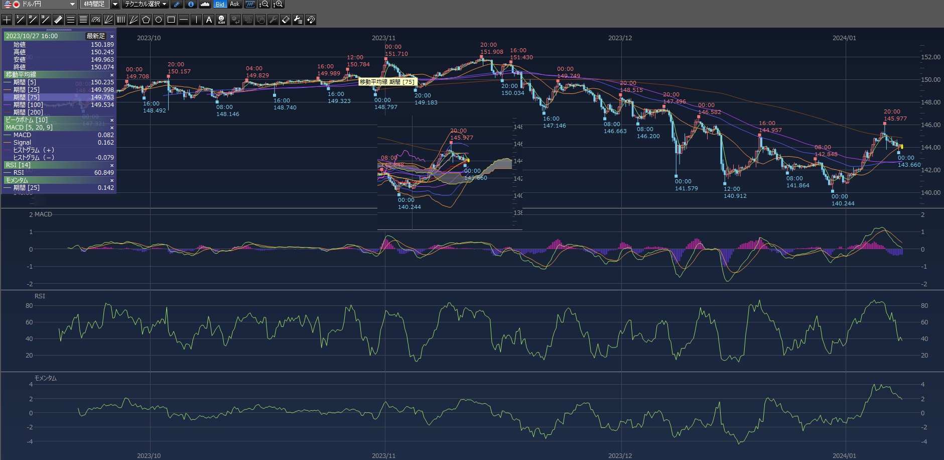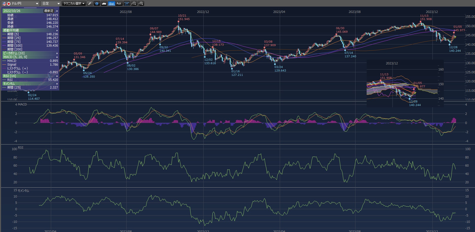 143.66円まで下がってますけどね。