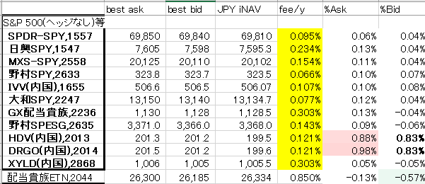他の米国株ETF(S&P500類似、為替ヘッジなし)は、いつものように乖離は小さいです。