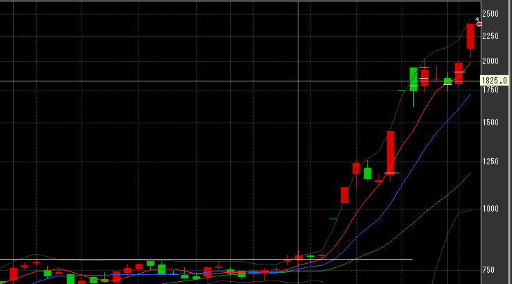 週末考察した通り2000の価格帯で一旦跳ね返された。結果論ではあるがPTSで半分決済しようかと思ったことは正しかった。