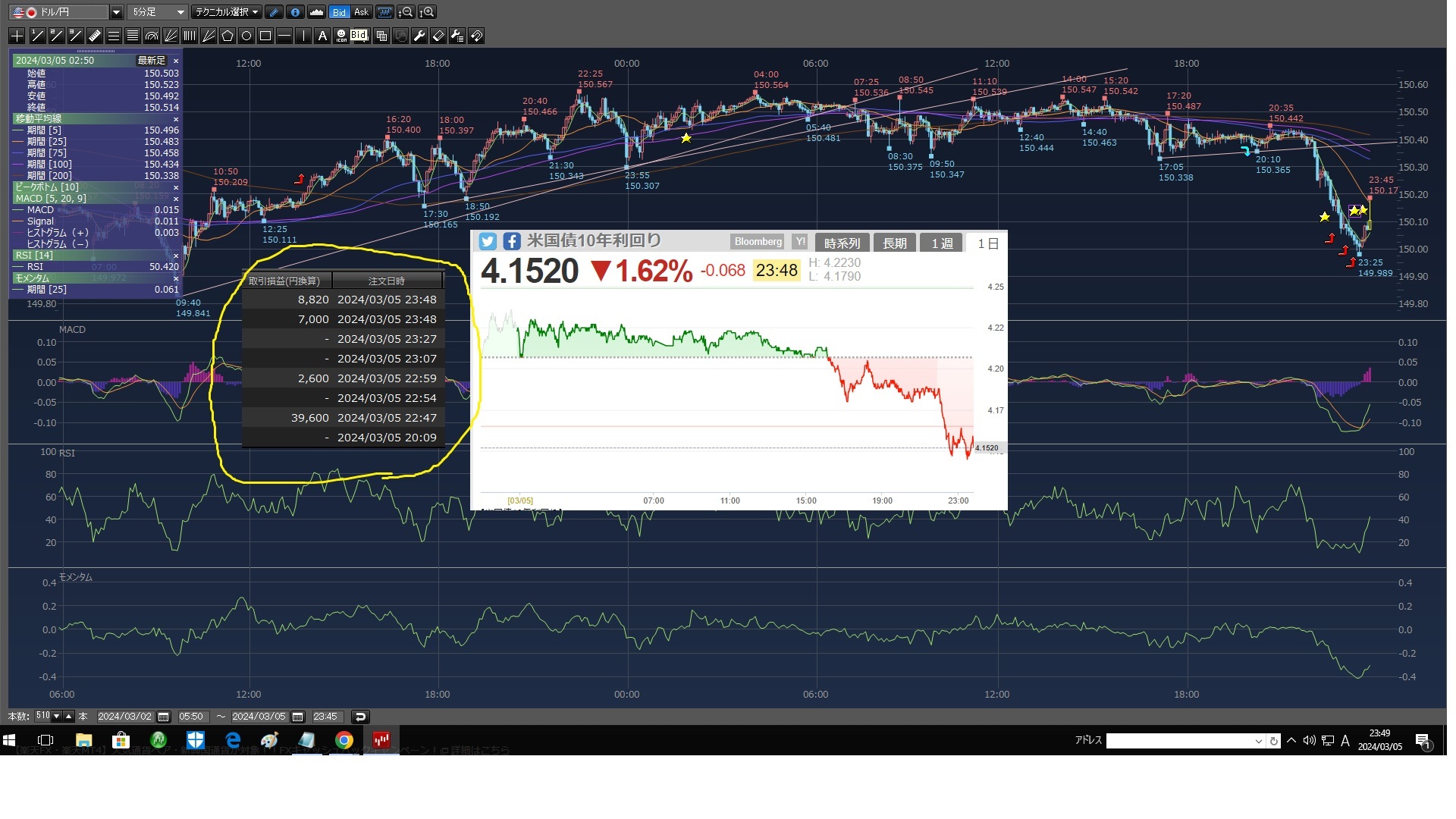なんとか150円近辺で踏ん張ってるな