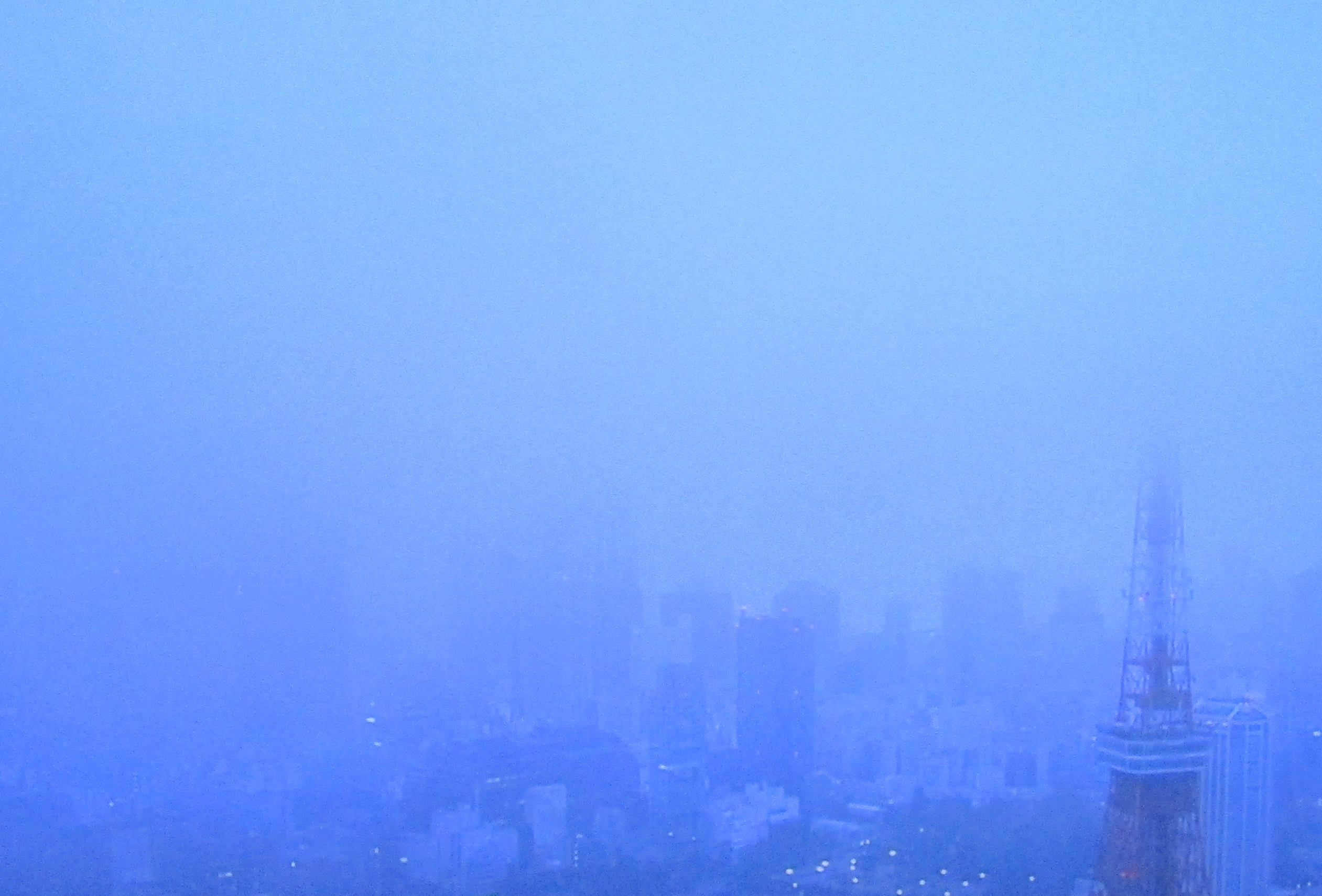 小雨けむる東京は見通し悪し。