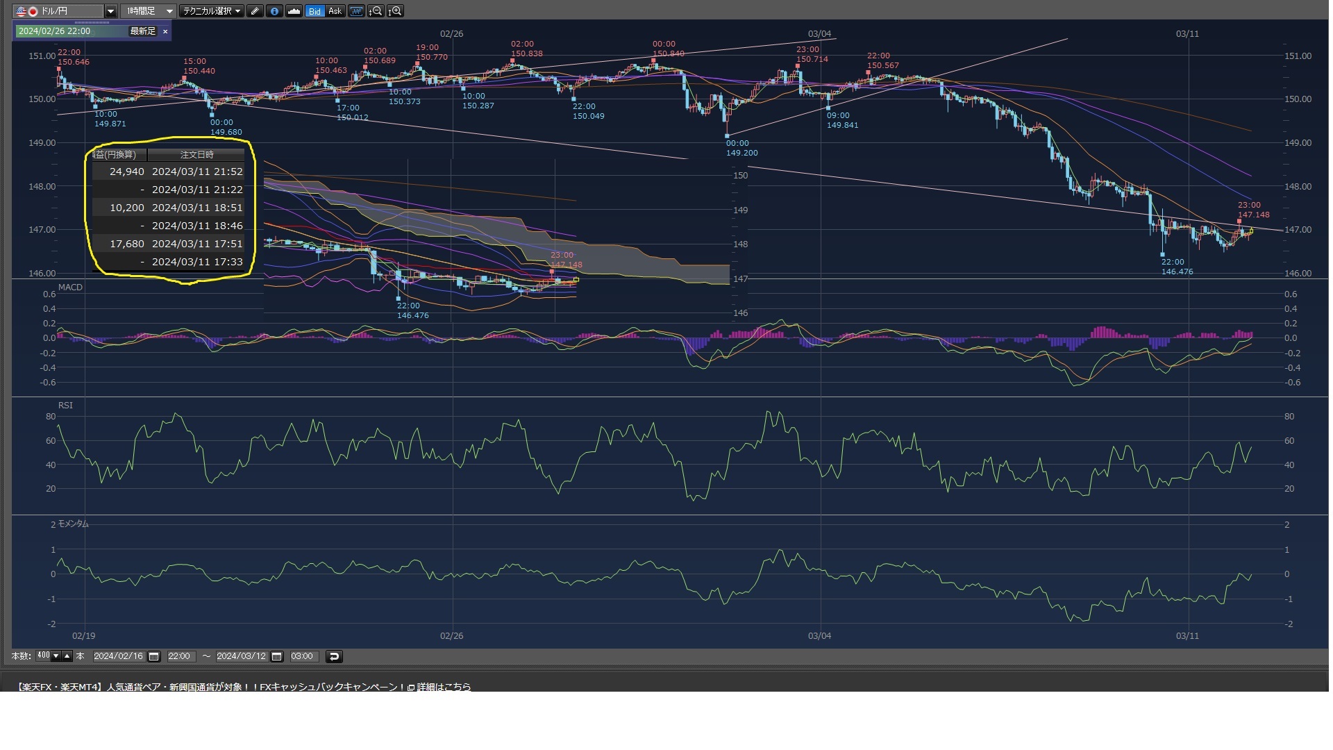 147円くらいまで上がるかなと思ってたけどいまいちなので降りた