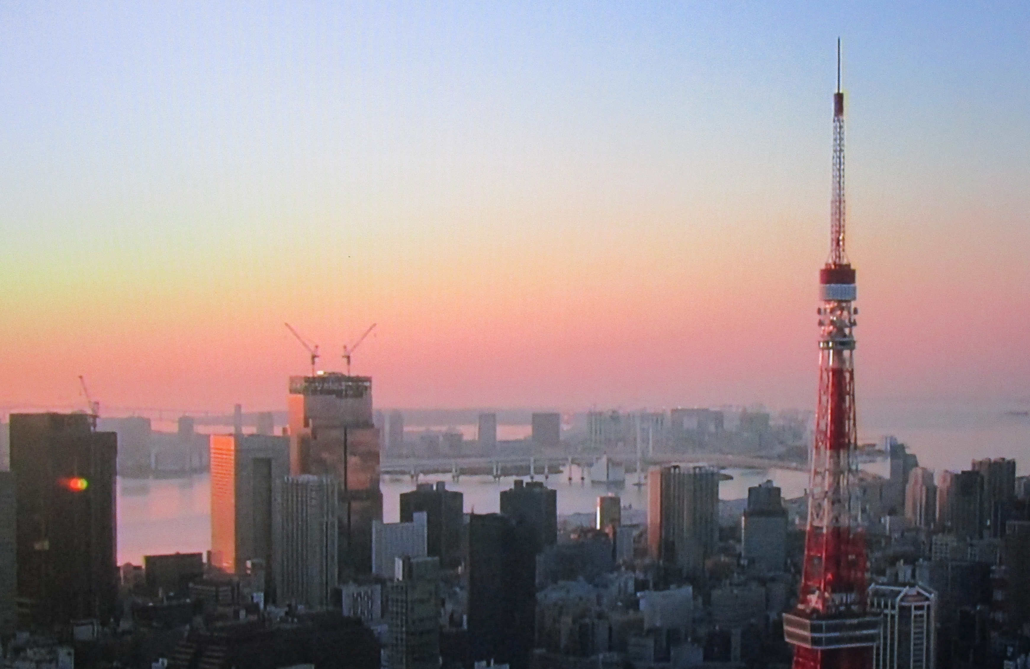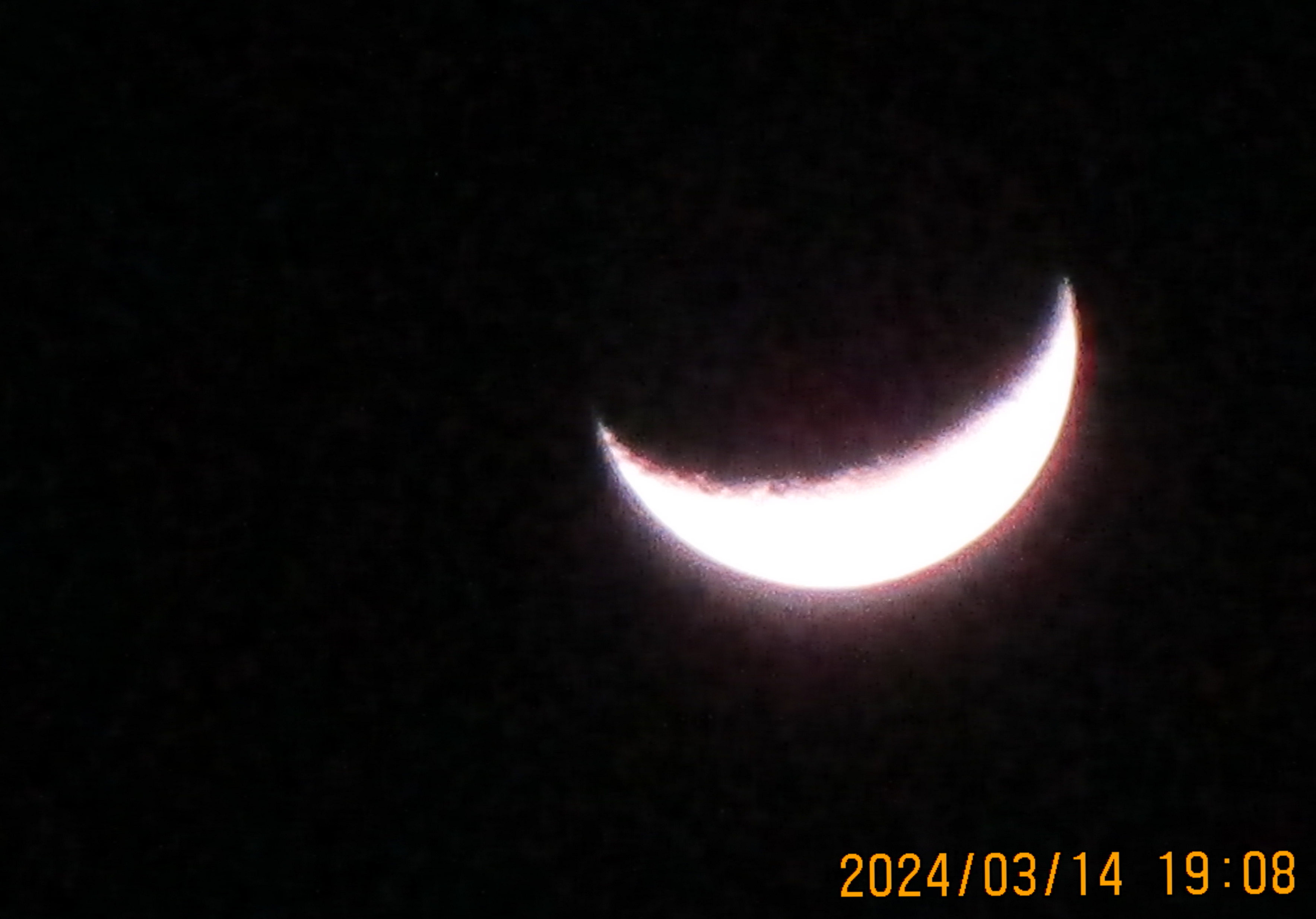 三日月のあと数日、夕方に見え始めて太陽の後を追いかけるように西に沈んでいく月を夕月と呼ぶらしいです。風情がありますね。早朝はきれいな朝焼けの色でした。
