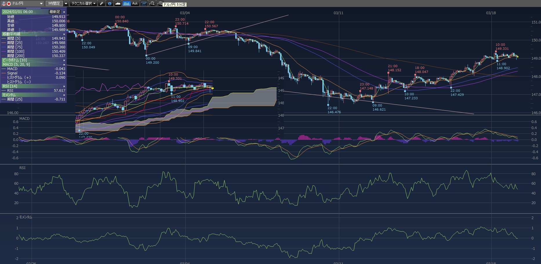 気が付いたら高値から落ちて来てて残念利確
