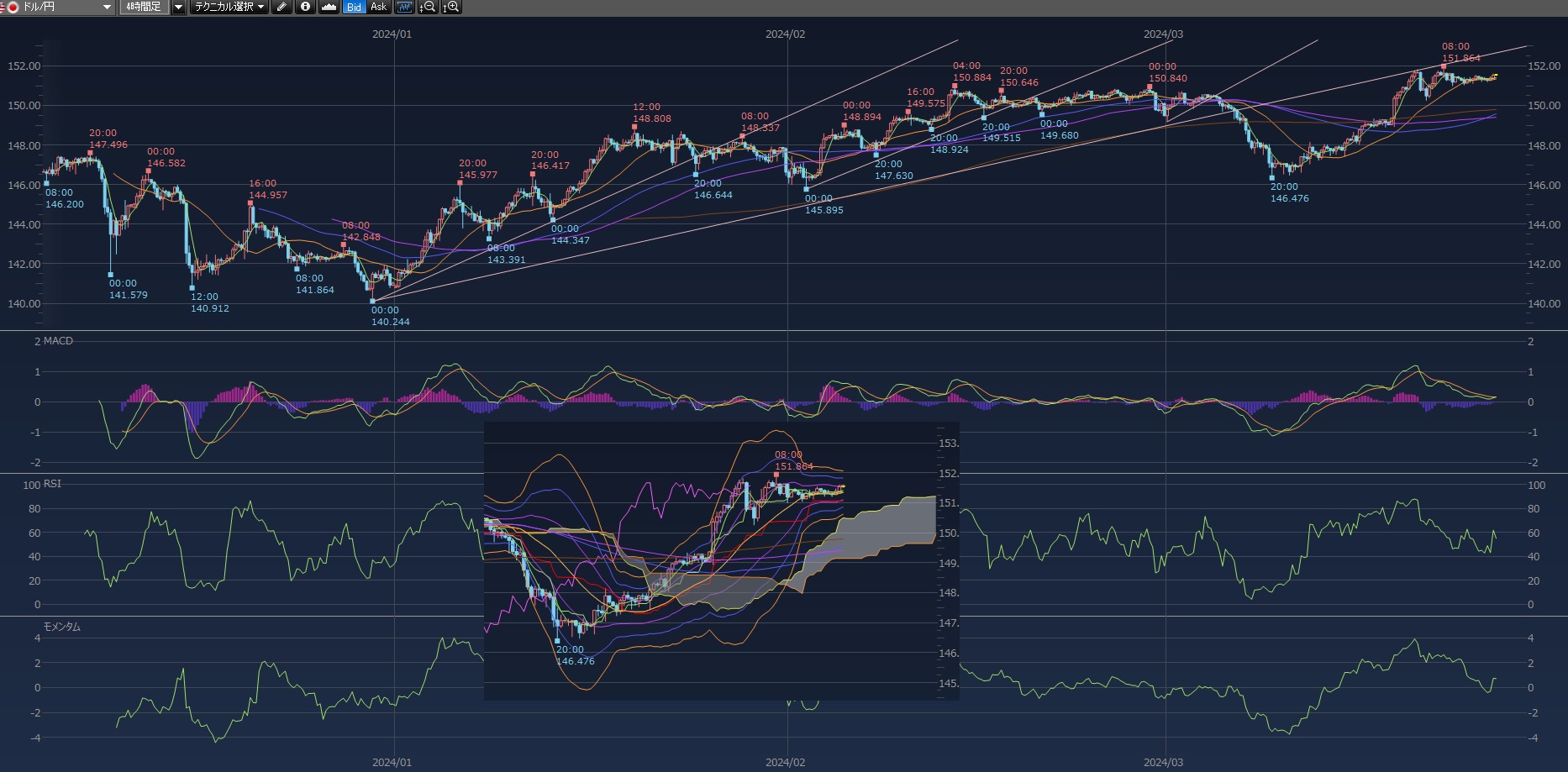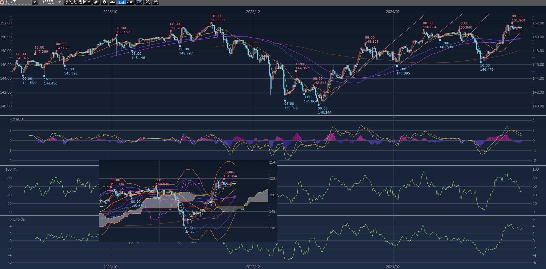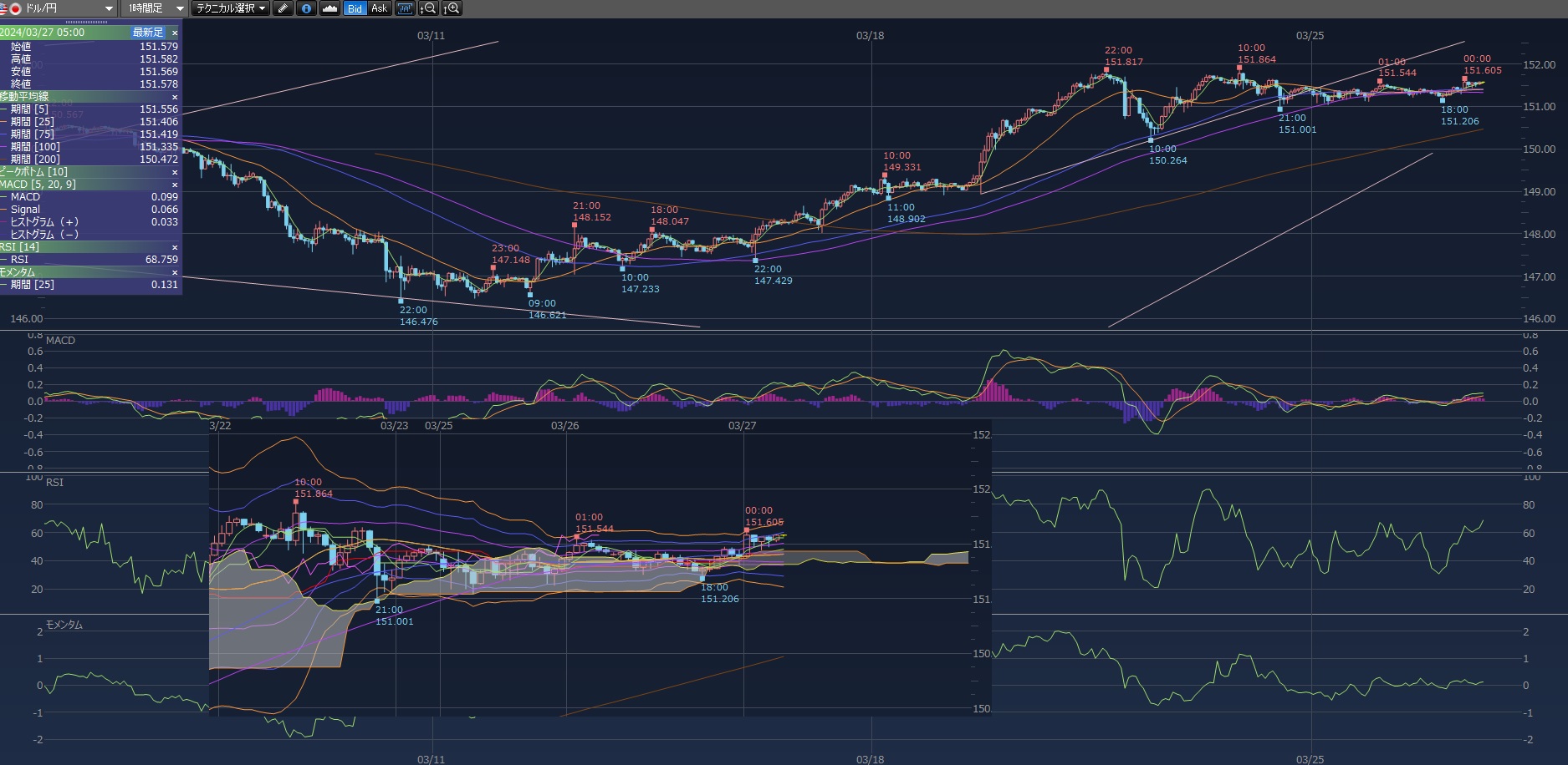 ここで一時間足で見たらまだ押し目ぐらいのポイントなんやと気付く。