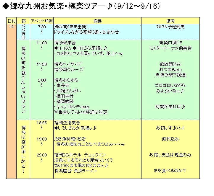 ます12日~15日の日程をUPしておきまつ♪