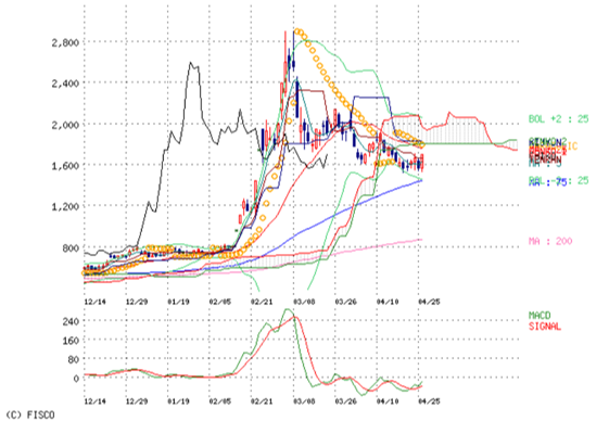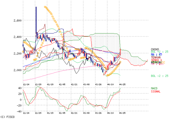 じっくり保有するので、三役好転関係なしに購入。最近は真横に進んでいるので、あまり買いタイミング関係ないでしょう。三井案件。