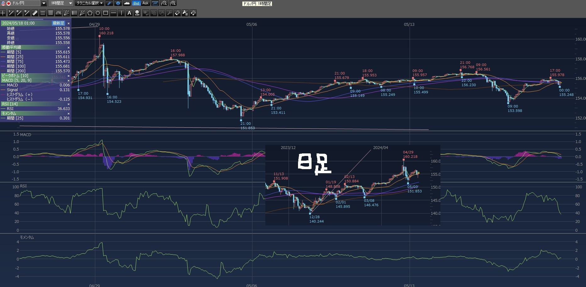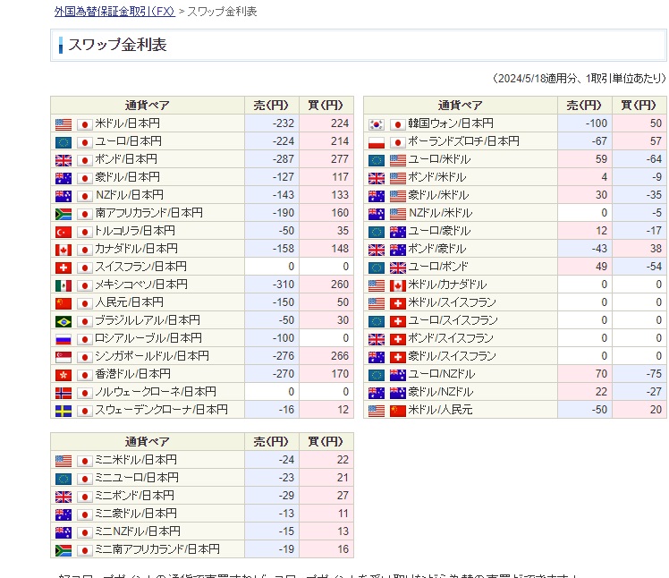 あとはスワップポイントで翌日にポジションを持ち越したら、金利をもらえたり払うことになったりします。