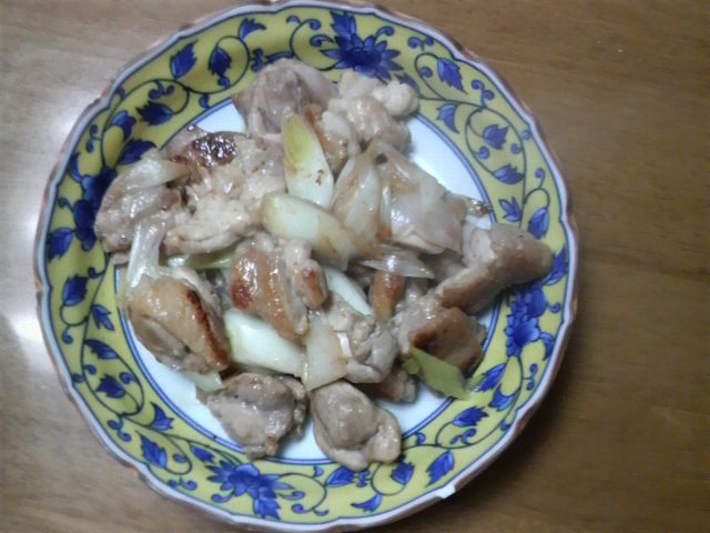 実を申すと、鶏肉にもネギにももう少し焦げ目をつけたかったのでござるが、何せ4人家族で1kgの鶏肉にネギ3本だったので、フライパンを振るのが精一杯でござりました(^^;