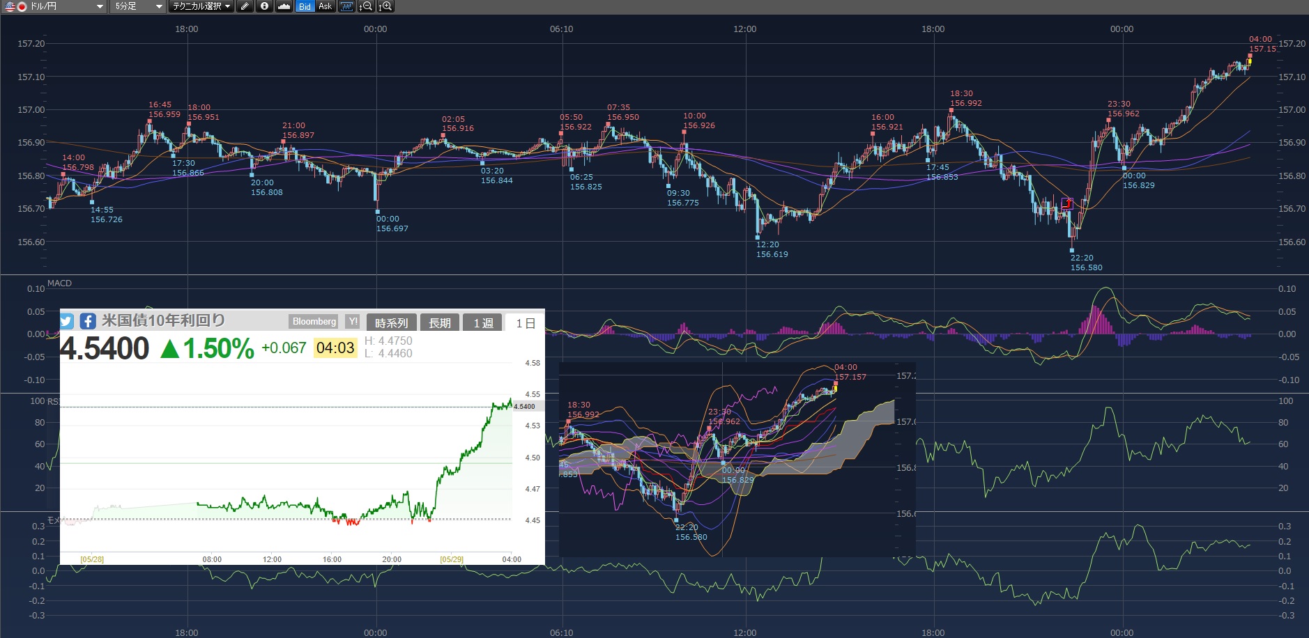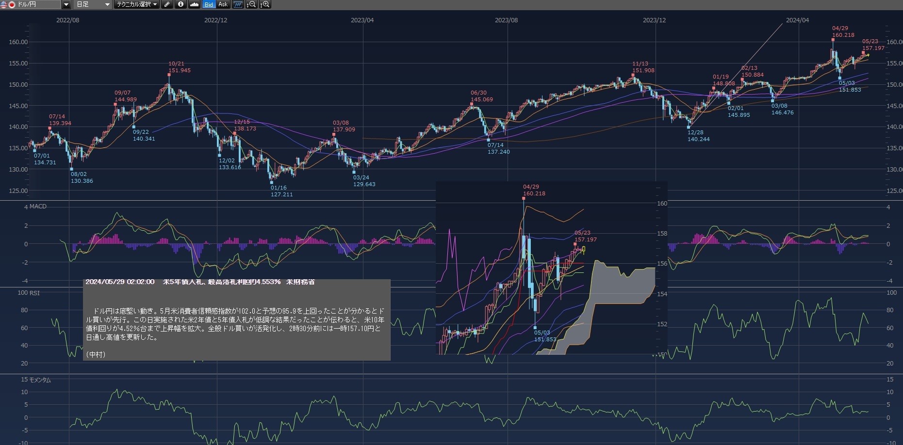 米2年債と5年債入札が低調で利回りが上昇したからとのこと