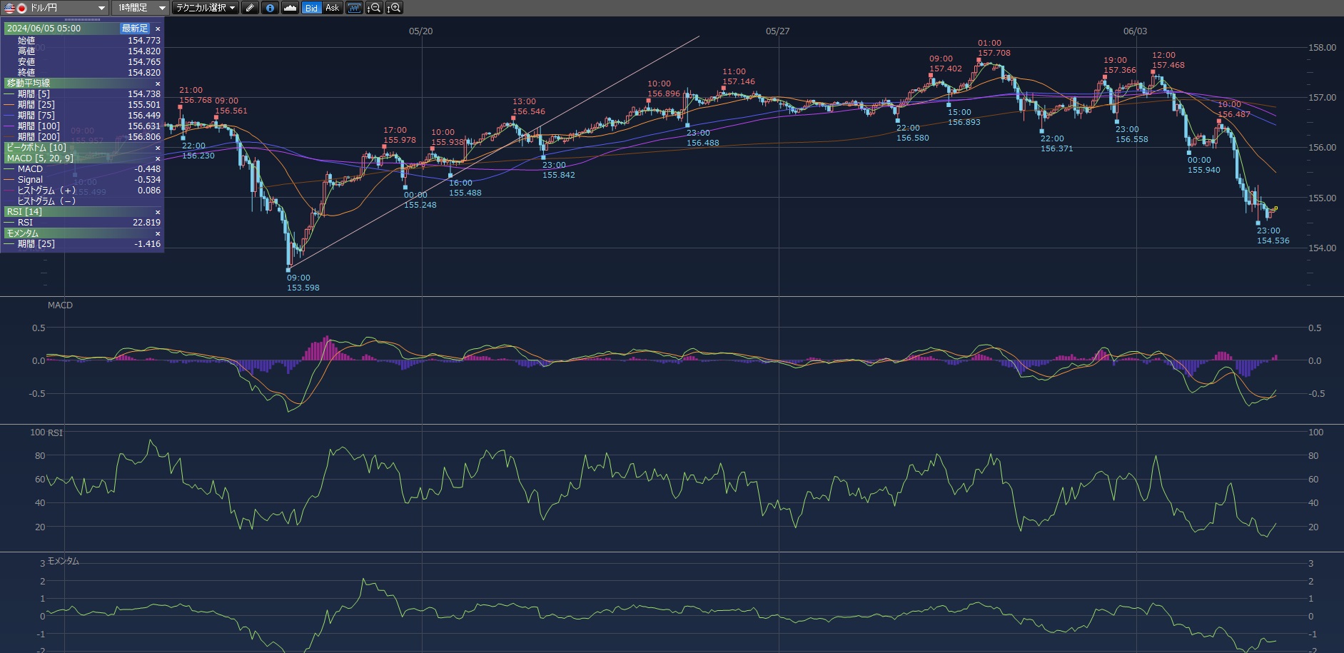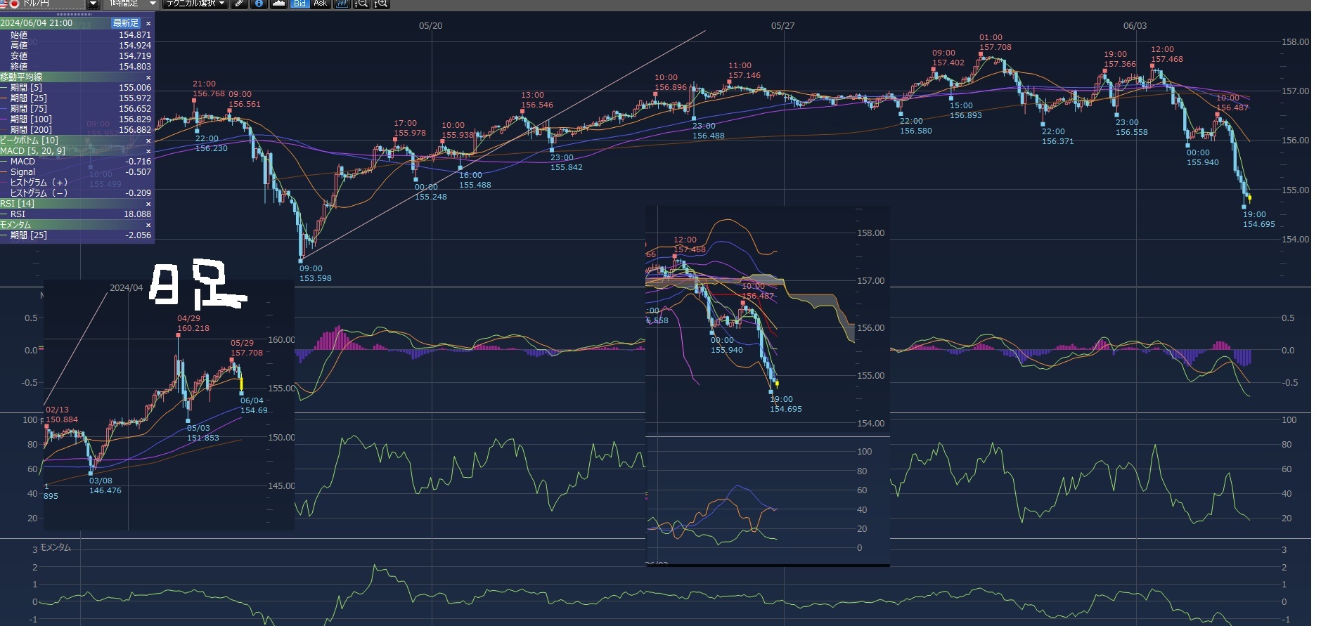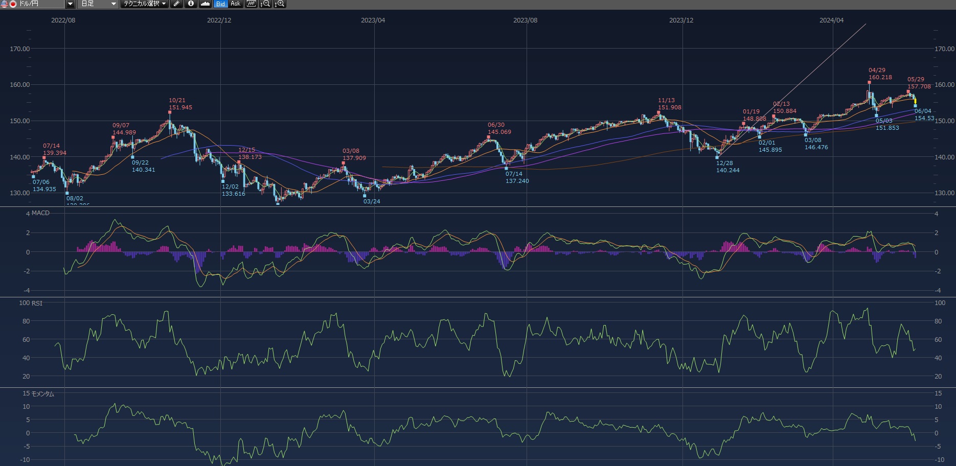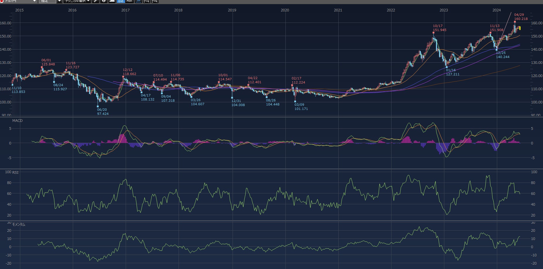 ドル円 下がってますね