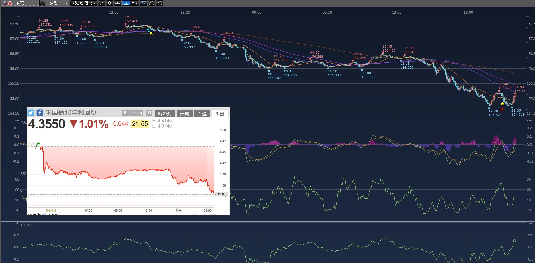 10年債利回りはまだ下げてるけどドル円ははんぱつ