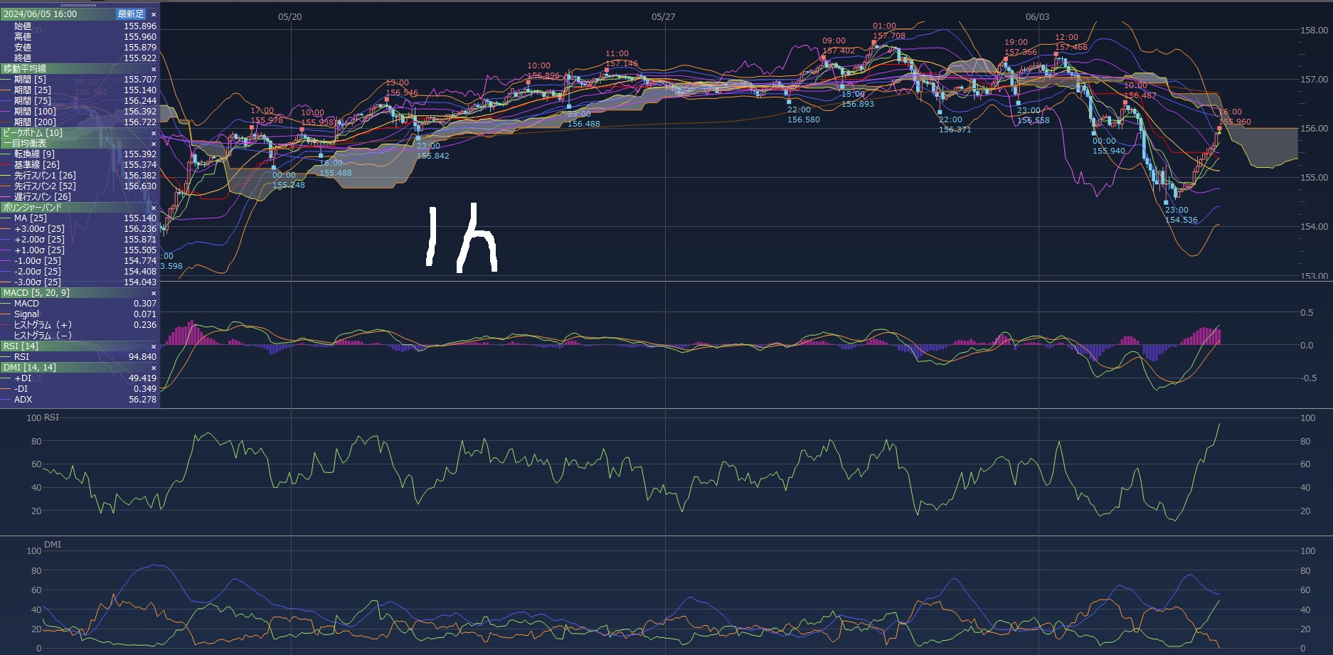 昨日の戻り高値をガッツリ大き目のロットで買い急落w