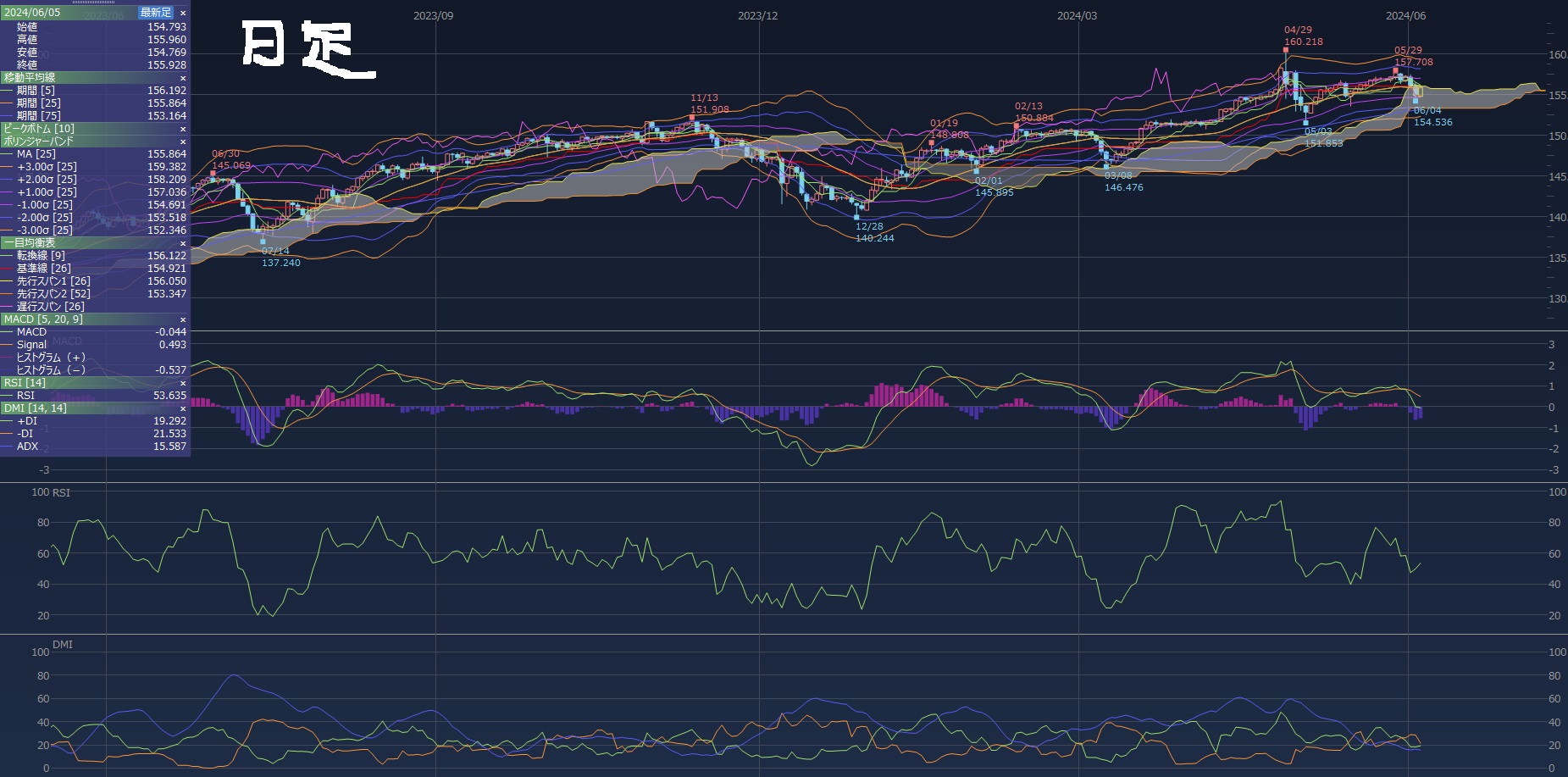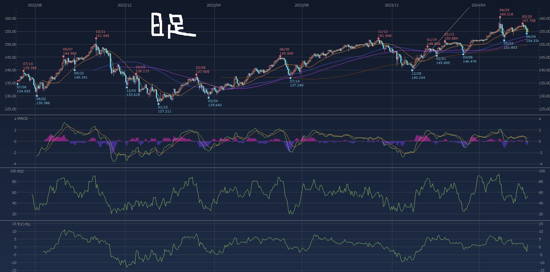 日足、週足