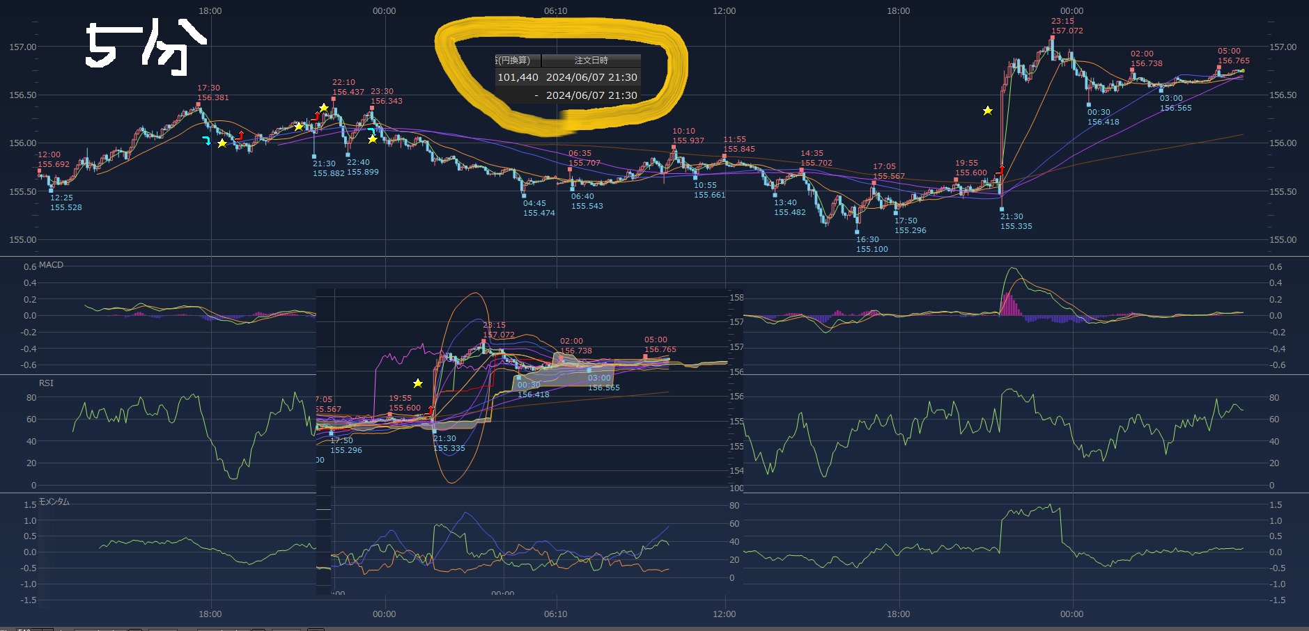一旦止まったとこで利益乗ってたので利確。