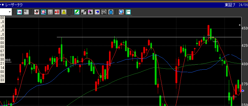 前日大きな陽線からの翌日大きな陰線はレーザーテックらしいので、これは仕方ないと割り切ってそのまま保有。