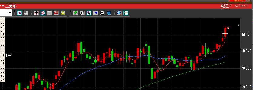 2回目(6/14エントリー分): IN 1494.5 含み損益 3.4%