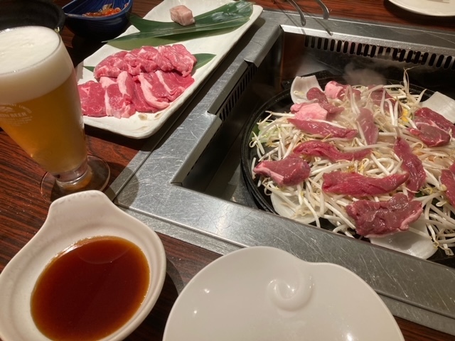 夜はキリンビール園でジンギスカンを堪能。(写真①)