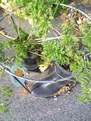 農業センターの展示物です。ダイコン、にんじんが長靴はいています。
