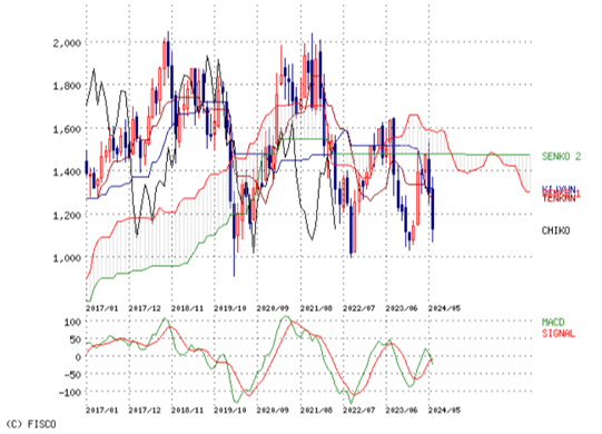 珍しく月足チャート。さすがに下がっても1000円でしょうと。