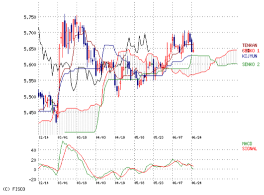 5650-5700のBOXと考え5700円で売る。よって数千円利益目標。