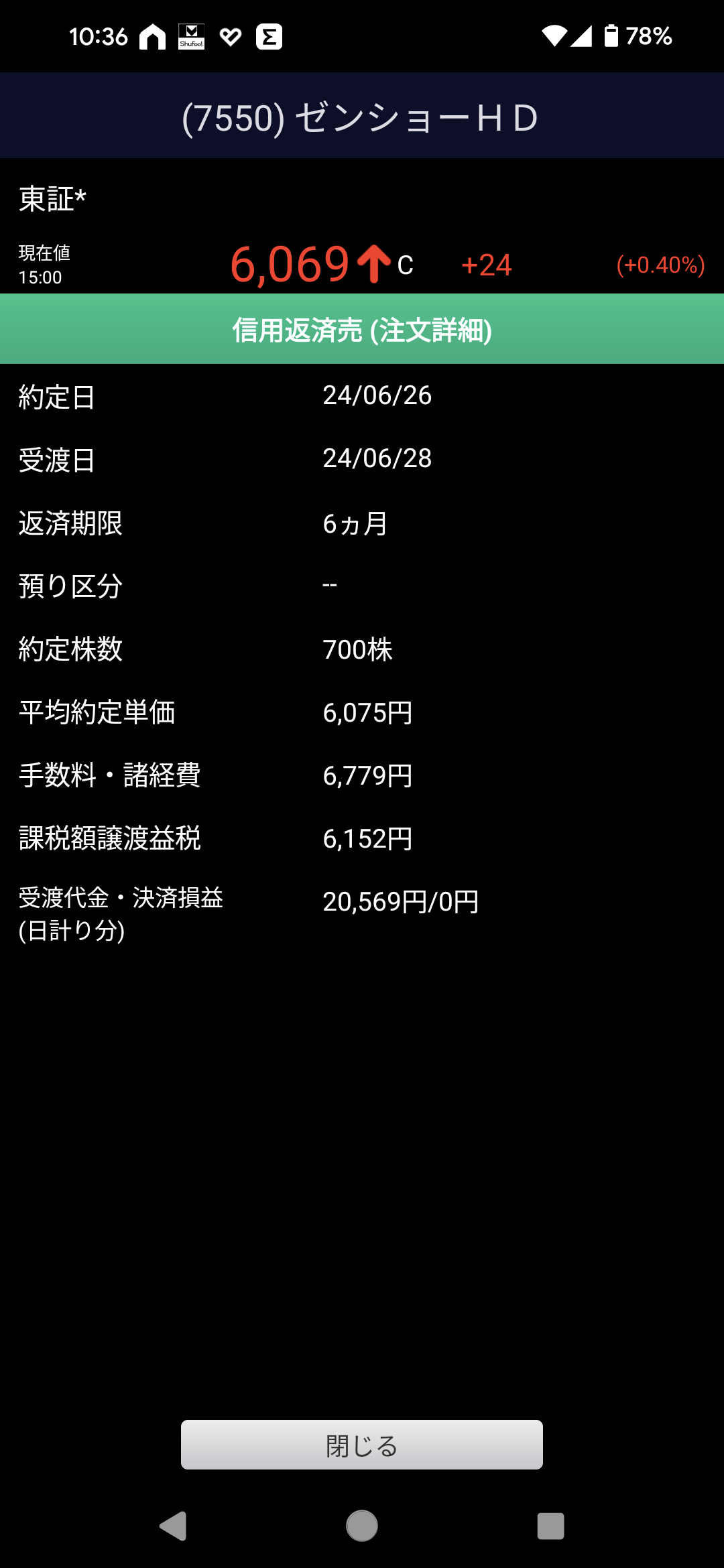 以前6月2日に信用取引で買ったゼンショーさん