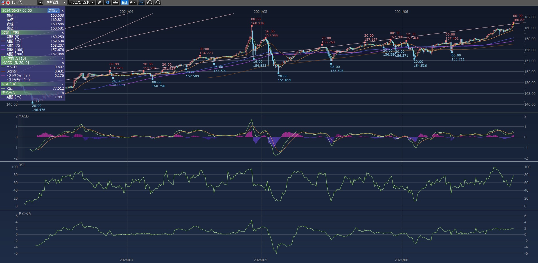 1時間4時間日足