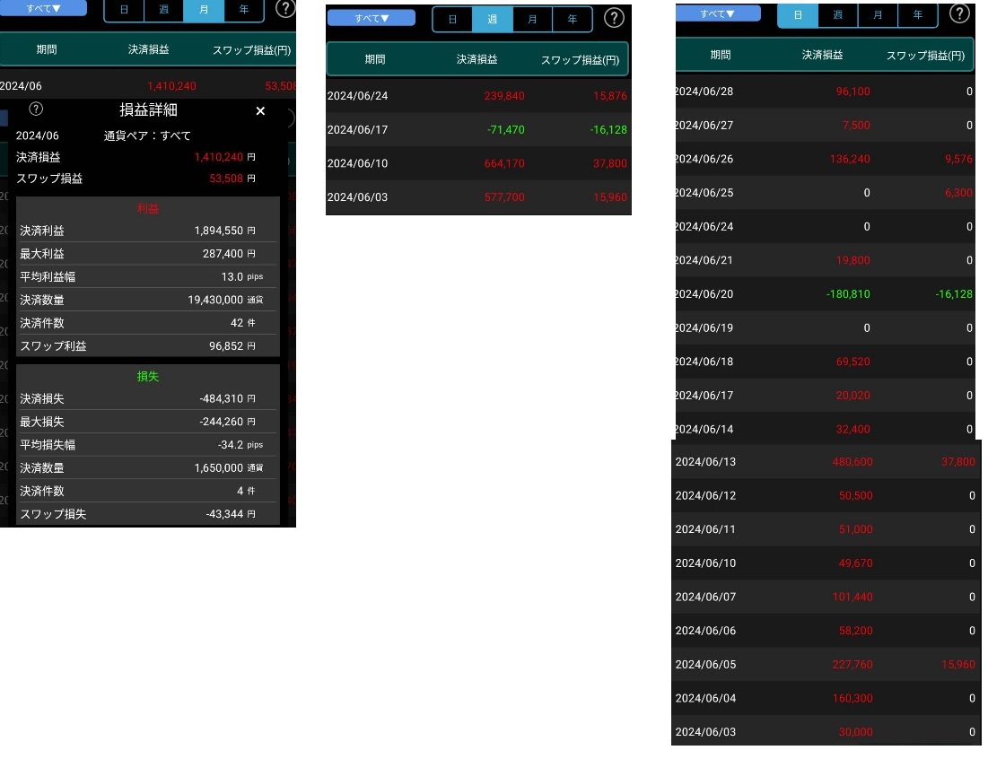 後はロット大きくしたときに逆へ動いて我慢出来ずに損切、ちょっと戻ったとこで逃げるのが勿体ないのかな。