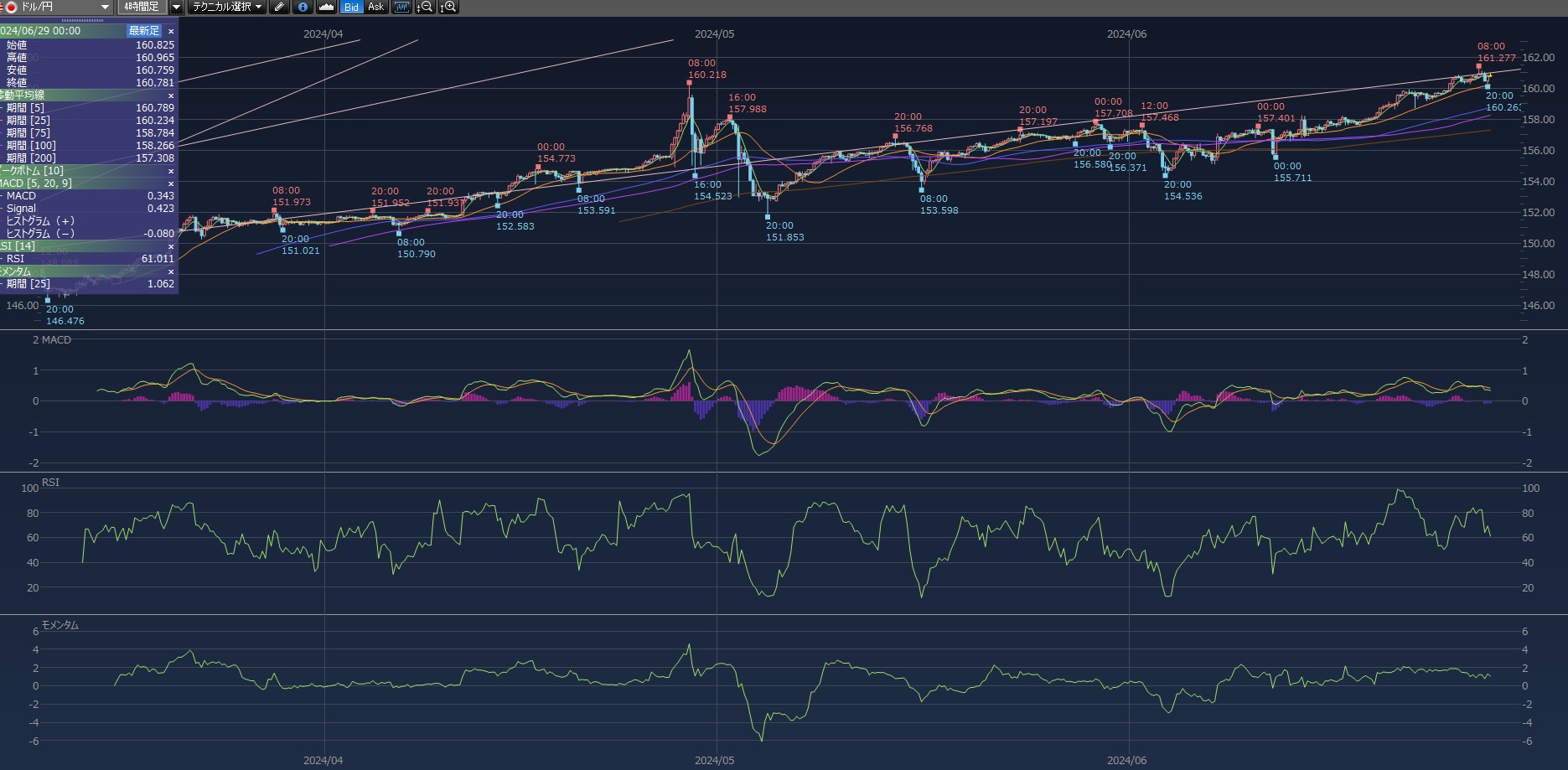 それから長い時間足をベースにエントリーをして利確ポイントを決めてくべきかな。