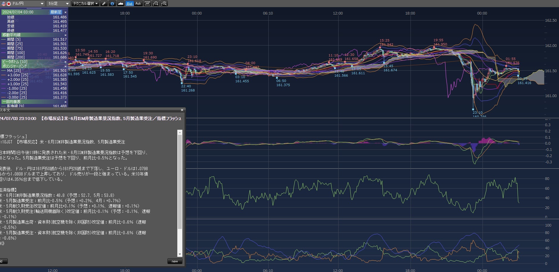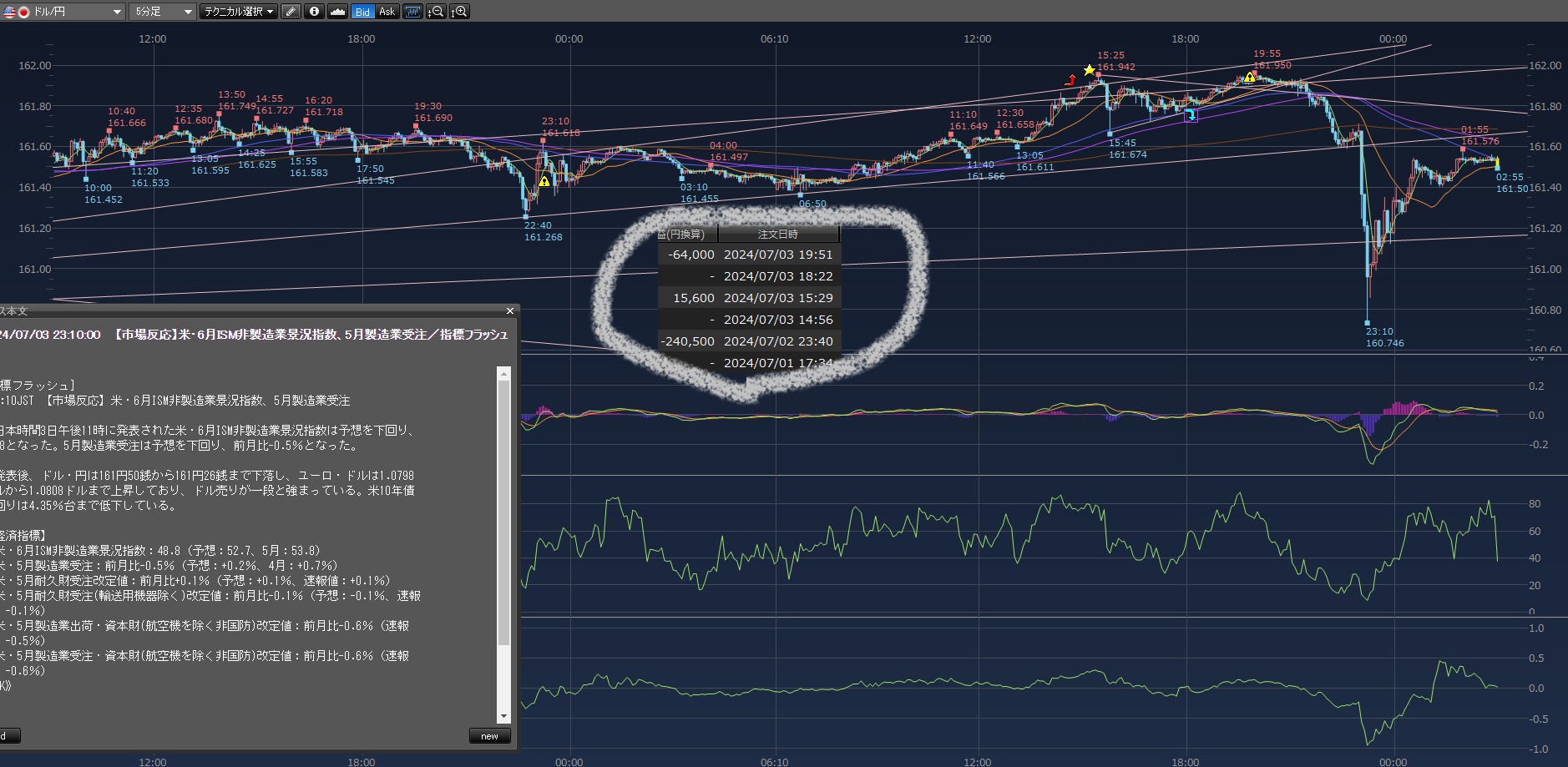 ISM製造業で利確出来るとこまでまた下げてたけど一瞬過ぎて無理w
