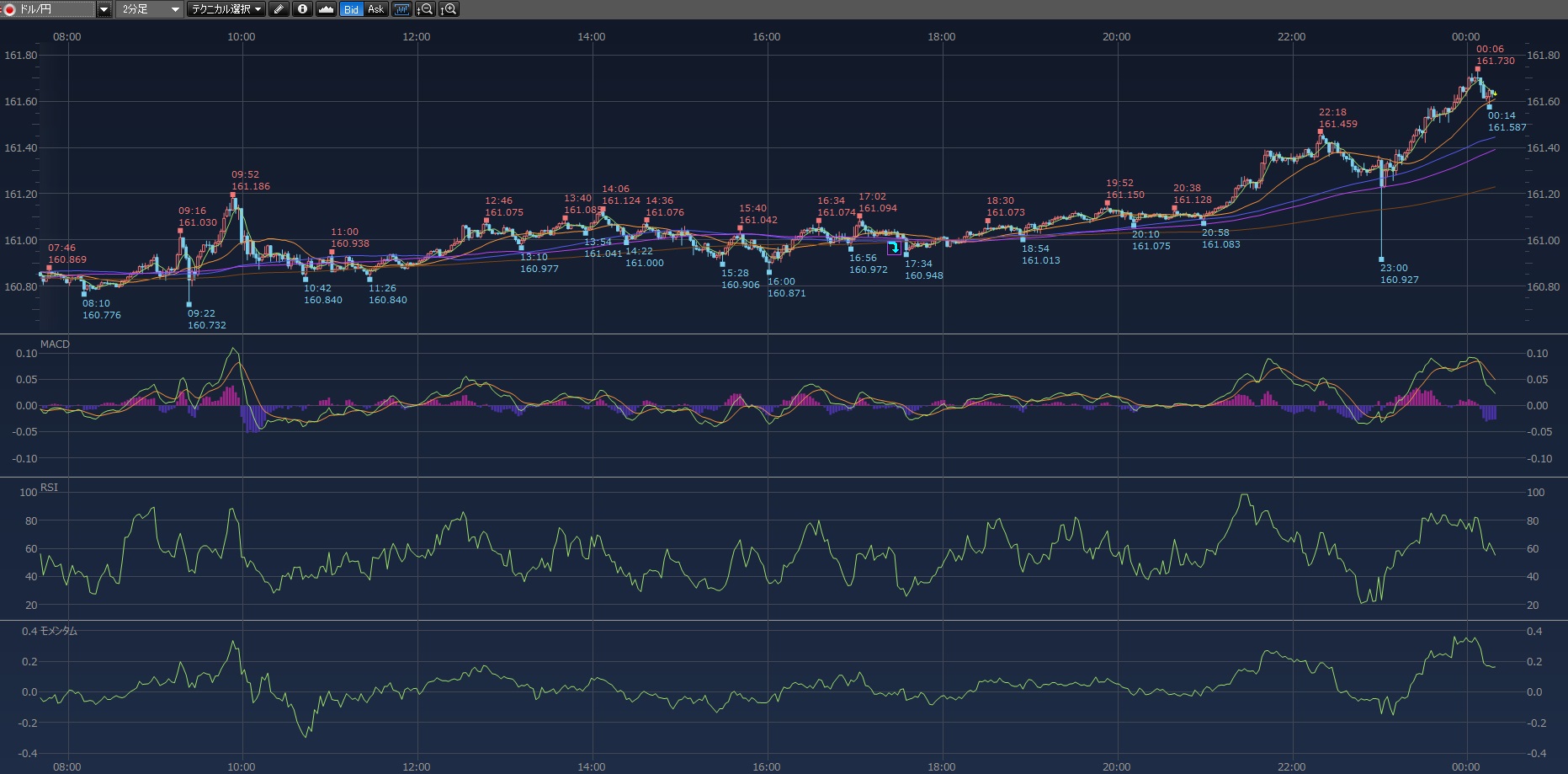2日1時間4時間日足