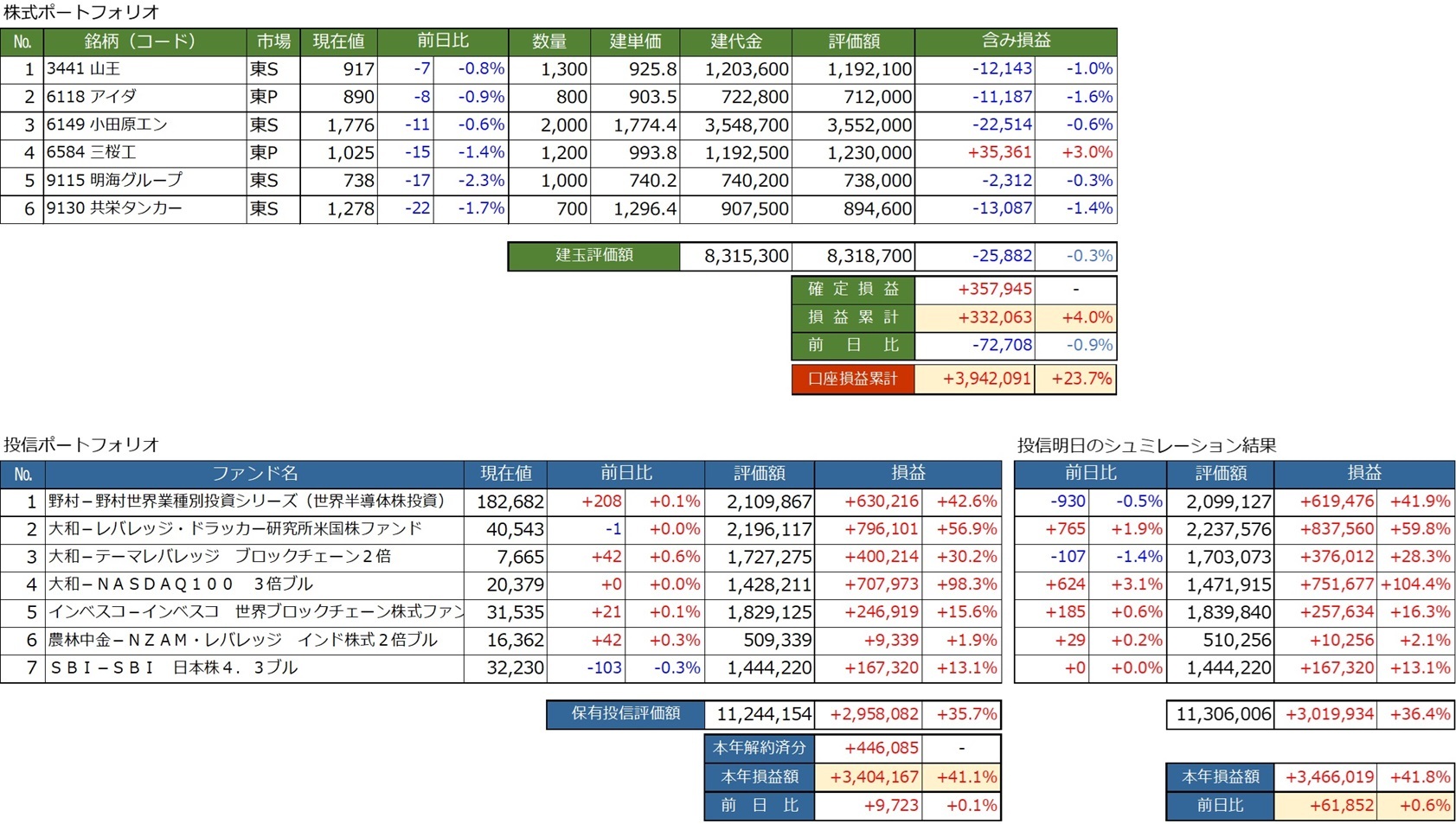 NY市場が休場のためNK以外は大きく動いてないが、わずかながらプラスだったので、一応今年の最高益を連日で更新。