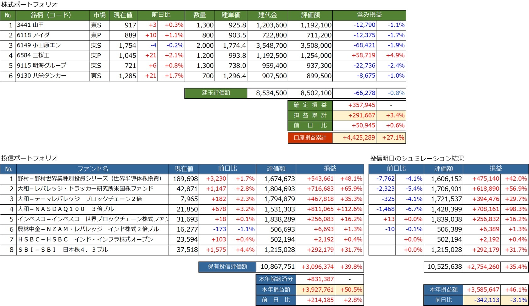 PFの大半が安値仕込み銘柄なので時が来るまではこんな感じでよいが、今年前半の日本コークス、ユーザーローカル、ダイハツディーゼル、レノバ、ミマキエンジ、カーリットのように短期でポンと利確できる銘柄も出てきて欲しいところ。