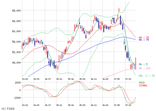 200日線で反発し、5日線も越えたんでいいかなと思ったら。