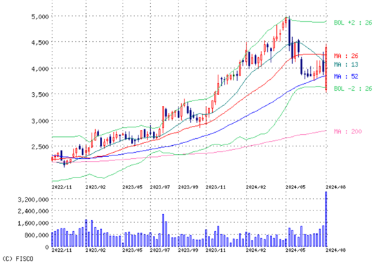 急落しても▲2σで止まり、そのあと直ぐに4本線越えた。(200はそもそも下回っていない)