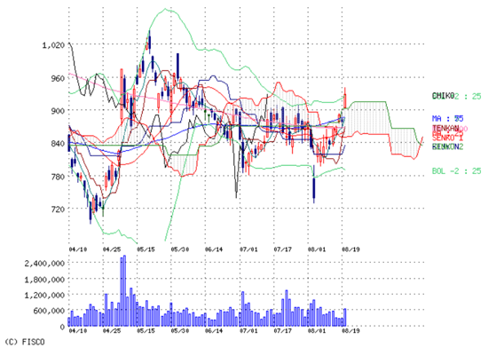 株価は4本線上越えした。久しぶりに雲も出したけど、見事に雲上線に合わせて飛んだ。