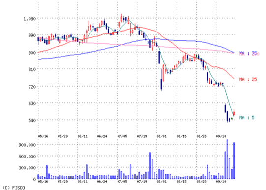 *値下がり率; 1社