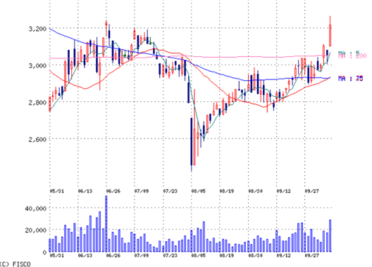 *値上がり率; 5社