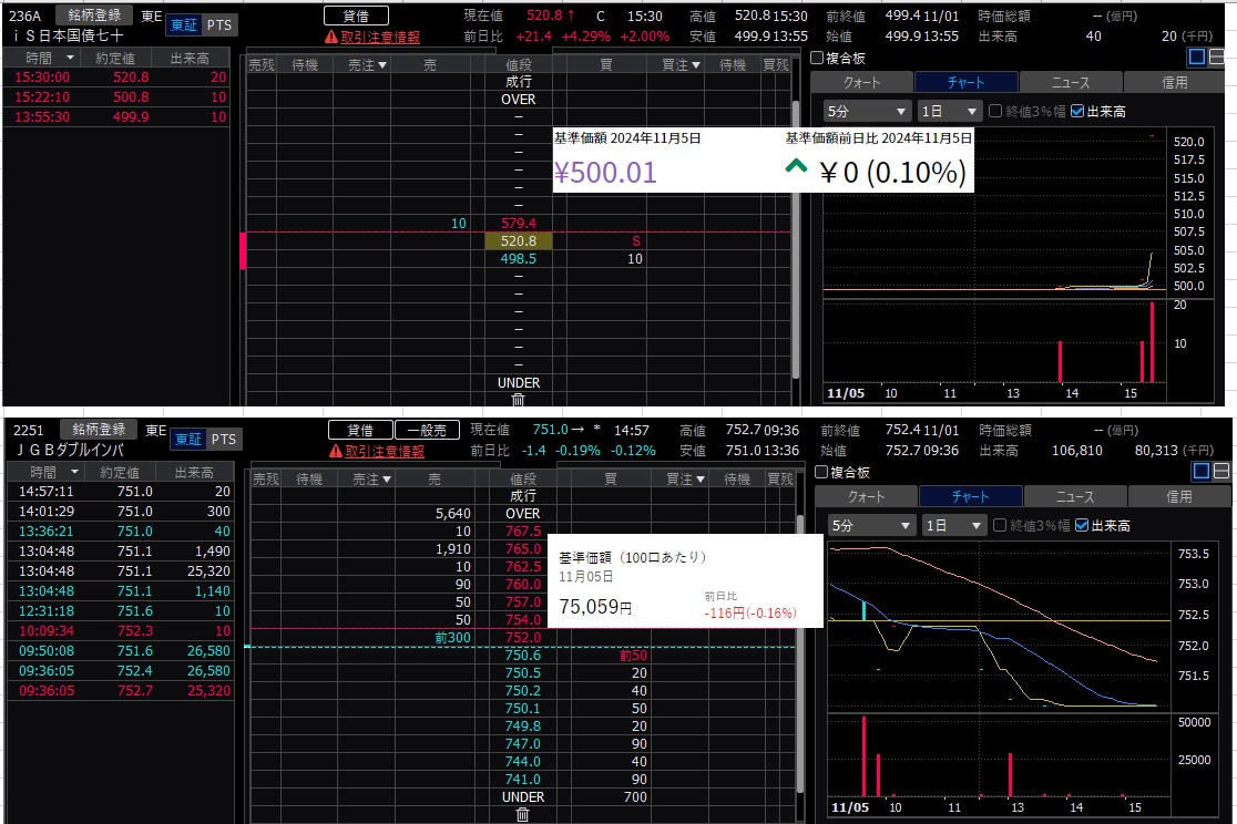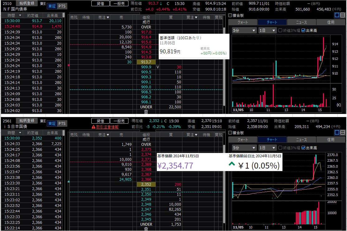 日本国債等を投資対象とするETFは、15:02~15:30の時間帯において立会内の先物利用ができなくなります。