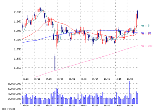 これは完全に、先日決算発表が良くて株価が上がった大成建設に続いてね。