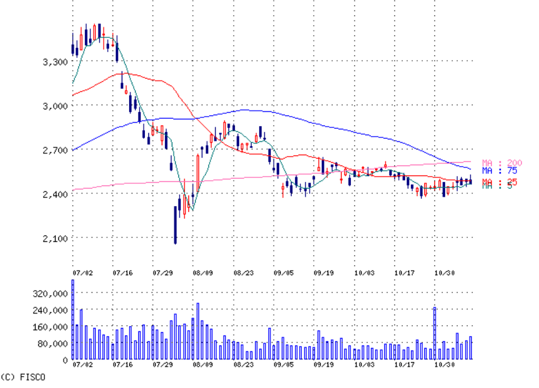 株価の上には75と200日があって。