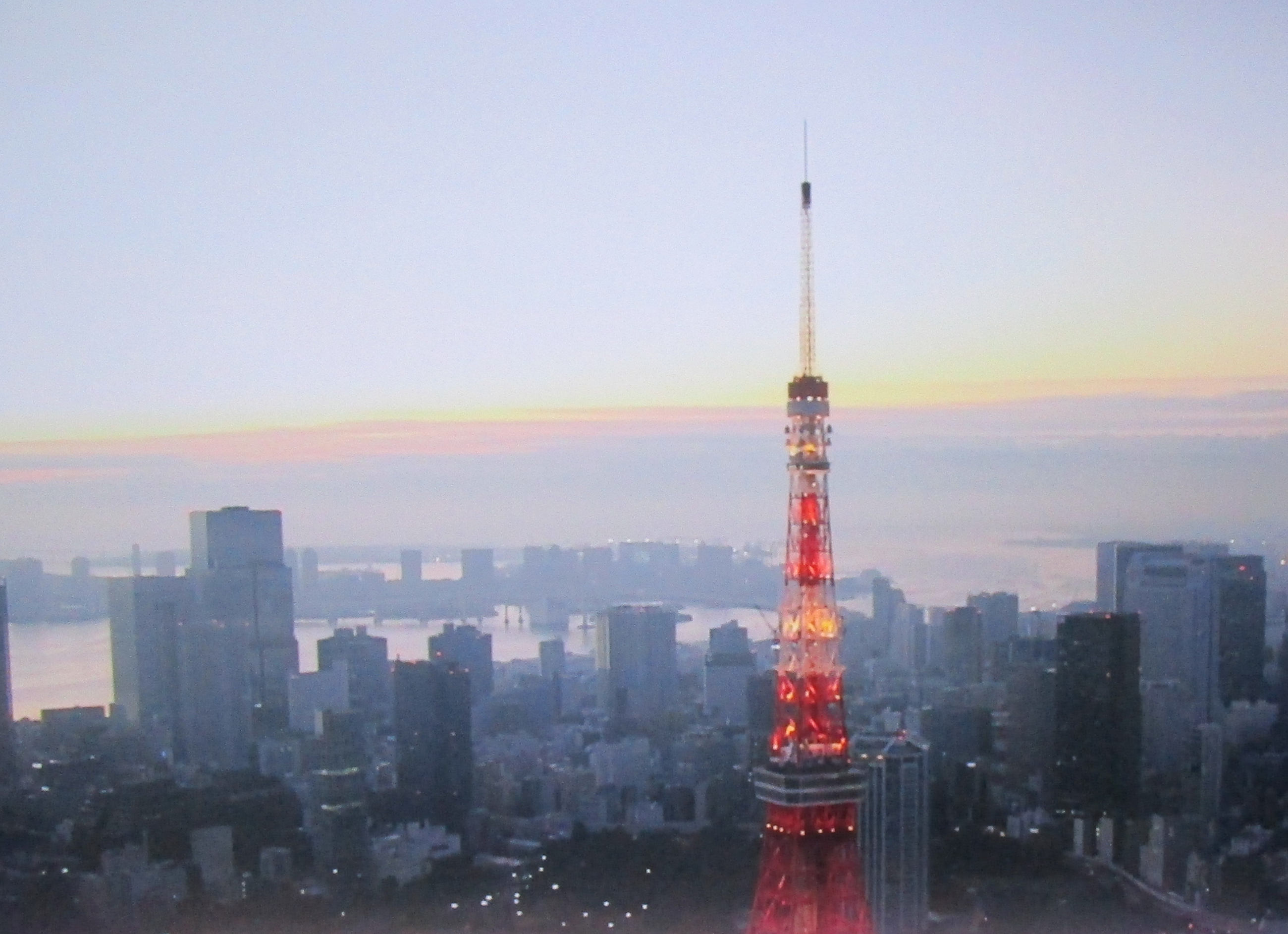 朝靄の東京タワー。きょうの気温は少し戻るそうです。