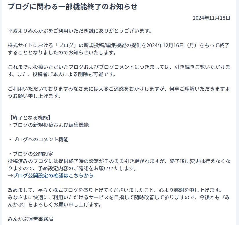 「ブログに関わる機能終了」のお知らせを知った時、