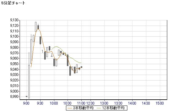 日経平均株価 9,043.12 + 183.56 + 2.07%