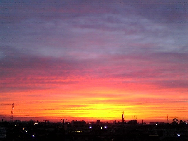 夕焼けがすごーく幻想的だったので思わずケータイで撮影。