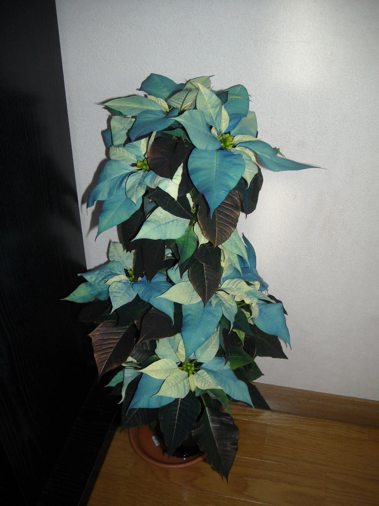 写真ですけど、青いポインセチアですかぁ?