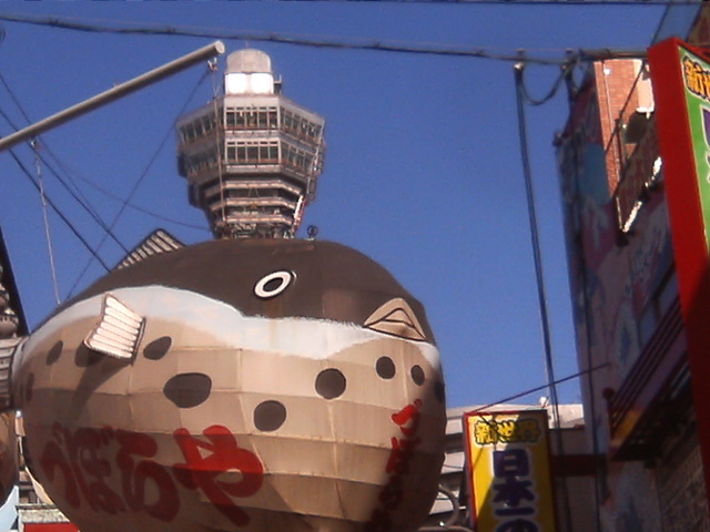 フグの頭の上に、通天閣がのっかっているみたいで、最高!!