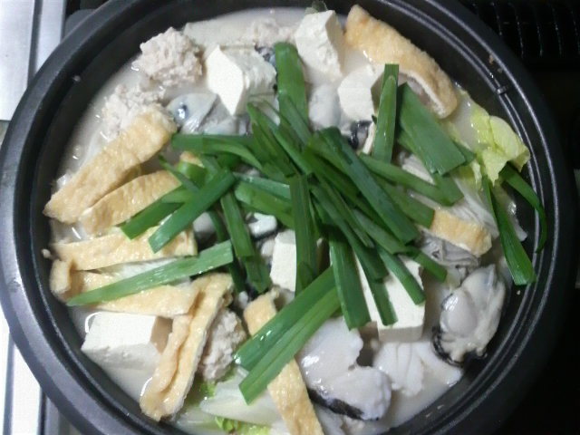 豆乳鍋は、鶏系の具材の方が相性良いように感じ申した。牡蠣とタラは宝の持ち腐れでござりました。鶏団子に鶏もも肉、もしくはJIN☆ZIN殿のような豚肉だんごといった組み合わせの王方が良いかと存じまする。