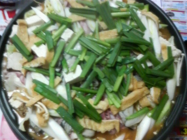この鍋(というか鉄板焼き?)、見た目は悪いものの、味は折り紙つきでござる。市販のもつ鍋だしを使う場合は、キムチの素(大2~4、お好みで)と味噌(大4~5)を入れて、ぐつぐつ煮込んで下され。(分量は4~5人前)最後の方はだしが焦げるくらいになりまするが、そこがこってりで一番美味しいかと(^^)