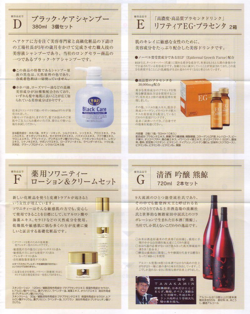 の中から1点選んで申し込む事ができます。A~Cは限定数があるので希望通りにならない可能性がありますが、D~Gなら希望した通りの商品がもらえる見たいですね。